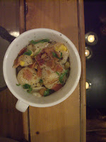 The Clam Chowder took more creativity. Once I got to thinking about it, I started getting less pleased with myself and more intimidated: Do's very particular about his clam chowder. He feels very strongly that it shouldn't involve any pork products, it should have almost-overwhelming clam flavor instead of veggie flavor, and it should be super thick. His family is into clam chowder in a big way: last summer his parents embarked on a Great New England Clam Chowder Roadtrip. Not to mention that we regularly stuffed ourselves on the best Clam Chowder in Washington D.C. Well, at least that gave me something to shoot for.